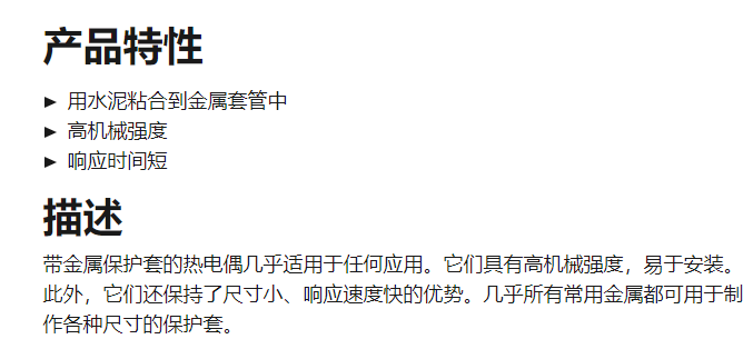 EPHYMESS 带金属套管的热电偶TE-MH系列