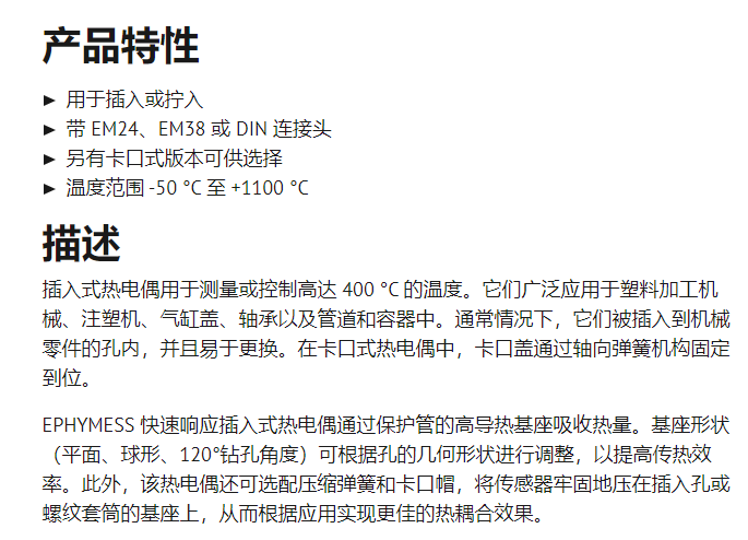 EPHYMESS 带连接头和保护管的热电偶LT-TE系列